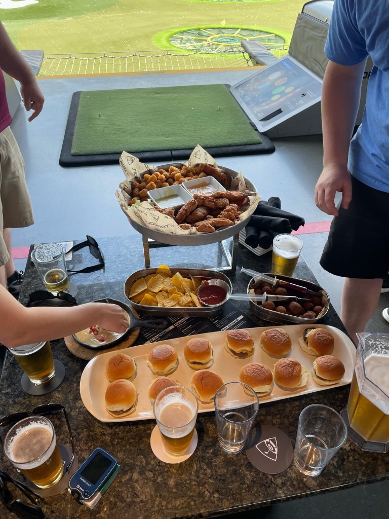 Another fun thing to do in Nashville that is family friendly and open to all ages was TopGolf. Let me tell you, this was so much fun! When I was growing up my grandfather always wanted to me to get into golf so I could go with him. I even took golf lessons for a summer. At TopGolf, I booked a private party that got us two bays and game play for two hours along with some food. You can choose what kind of options you want and a representative will work with you to make sure you’re getting what you want. I chose a standard package that came with game play and the food was: chips, salsa, queso, sliders, chicken tenders and tater tots, and doughnut holes. All of the food was fantastic! I could have spent the whole day chipping and driving balls out into the arena.