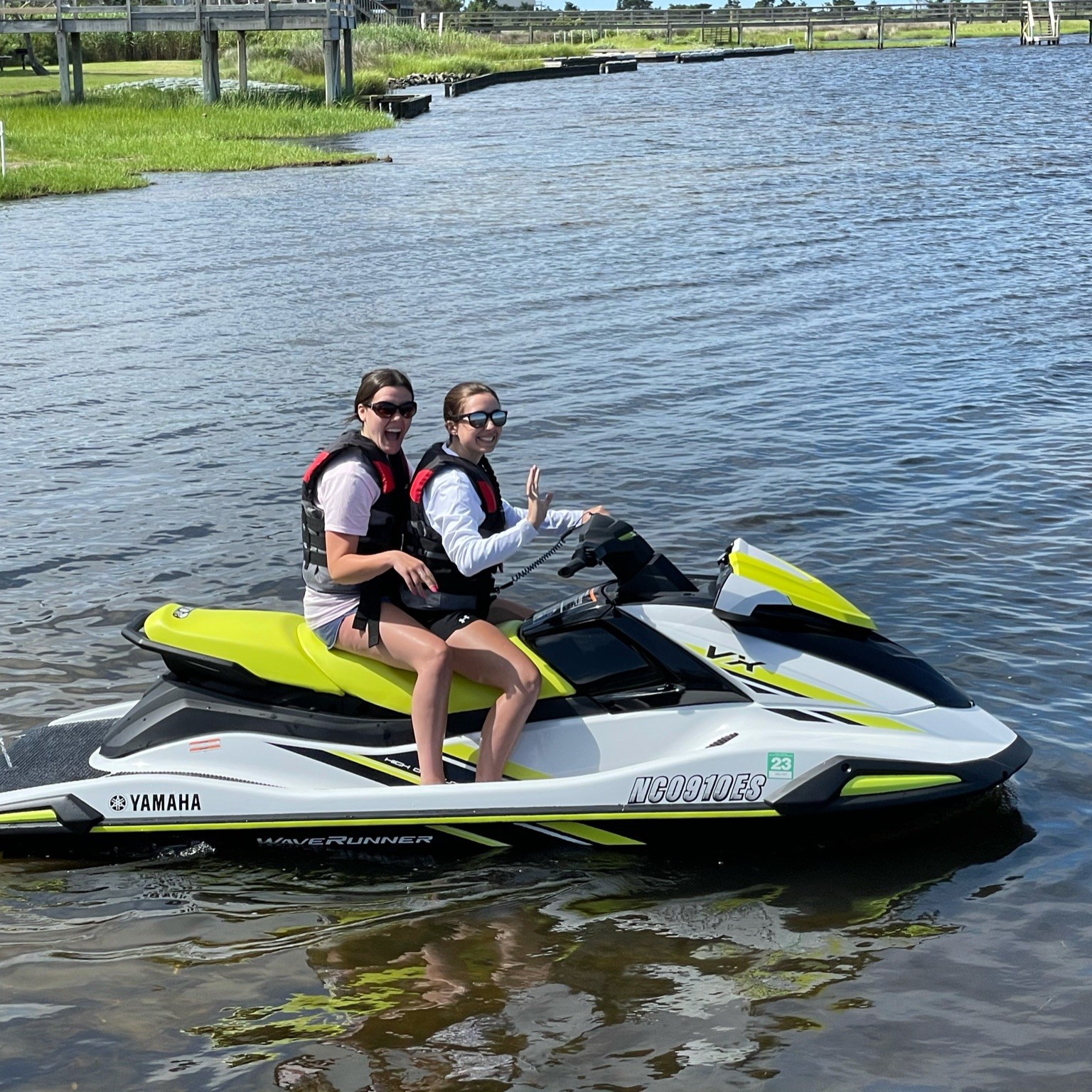 Aside from all the food options in the Outer Banks, there is also so much you can do! One day I rented a jet ski for an hour from Hatteras Watersports in Salvo. We could only ride on the Sound side (the Sound side is the side that is facing the mainland. It also is an estuary where freshwater and saltwater mixes together.) we couldn’t ride out in the Atlantic which was fine by me. I’ll be honest, I was a little nervous about getting on a jet ski in the ocean. I’ve ridden one dozens of times on a small lake, but never in the ocean. I wasn’t going to let a little bit of fear stop me from trying something new and going outside my comfort zone, that’s why we’re here after all. It ended up being a really cool experience and believe it or not the water was pretty shallow in the boundaries we had and it was crystal clear. The waves is what I was most worried about but there weren’t big waves even from the other skis and boats out in the water.