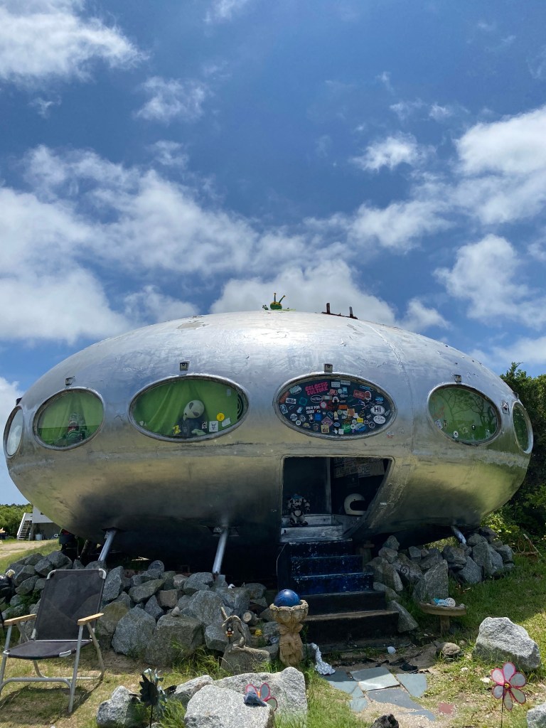 Right near the road to get to Equine Adventures is a place called the Futuro House. It’s a giant UFO! There were stickers and license plates on the inside and there was even a little guest book you could sign. It was a fun place to stop for a cool photo op.