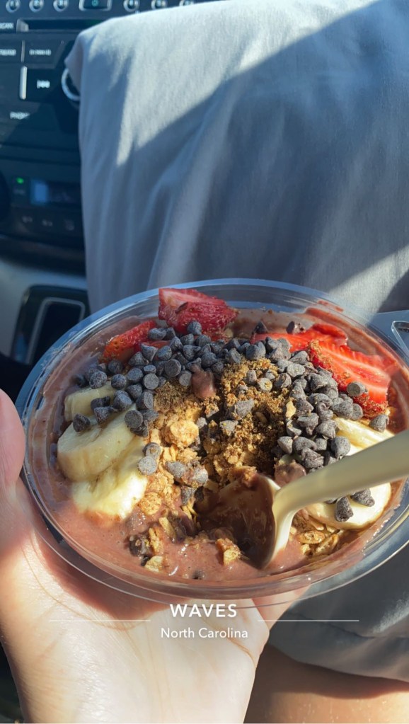 The towns in OBX were touristy. There were so many gift shops but there was also a ton of surf shops, ice cream places, restaurants, bars, and other cool places to check out. One of my favorite places was Hatteras Bowls. It was a little smoothie shop in the town of Waves. The first time I went I got a Purple Smoothie which was so good and made with lavender. The second time, I got a smoothie bowl called the Backdoor. It was so good! (For those who don’t know, I have recently been on a fruit journey. I have never really tried / liked any fruits before and so far it’s been amazing. I also started getting Daily Harvest boxes so I get their smoothies all the time now and I LOVE it!)