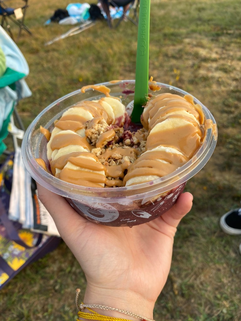 Admission to the event started at 3pm. There was a live band, food stands and other vendors like crafts, jewelry, and alcohol. Most of the food stands were your traditional festival / fair food like french fries, chicken tenders, hot dogs, and soft pretzels, but there were some other options as well. There was a food truck selling smoothie bowls and smoothies, which is what I got. The food stand next to the smoothie truck was doing wok fried noodles. They smelled really good but the line was super long, which I’m sure means they were good.