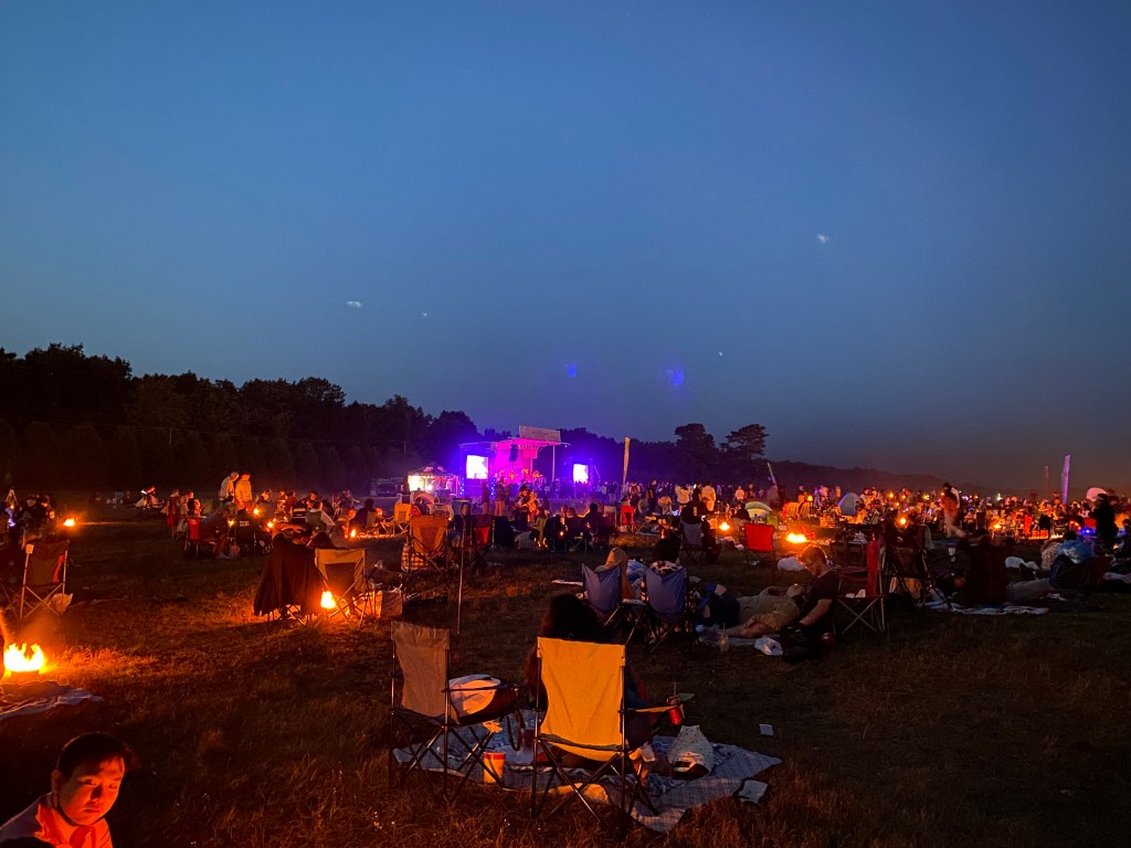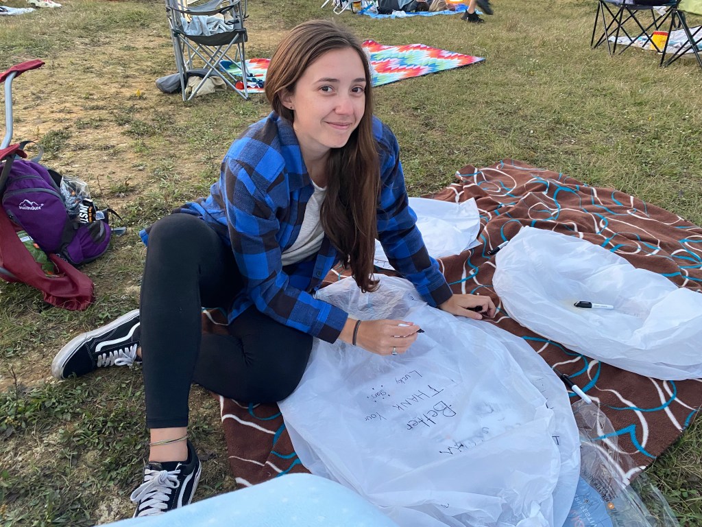 I went to this event with my mom and my best friend so we brought lawn chairs, blankets, extra sweatshirts, and some bottles of water. When we first entered we signed in and picked up our lanterns and lighters. There was an option to purchase a fire pit and a s’mores kit. The fire pits were tin cans. They looked like cookie containers you usually see around Christmas time.